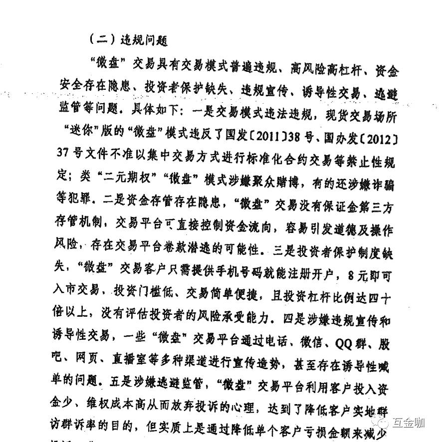 另据互金咖了解,“微盘”交易具有交易模式普遍违规、高风险高杠杆、资金安全存在隐患、投资者保护缺失、违规宣传、诱导性交易、逃避监管等问题。具体如下: