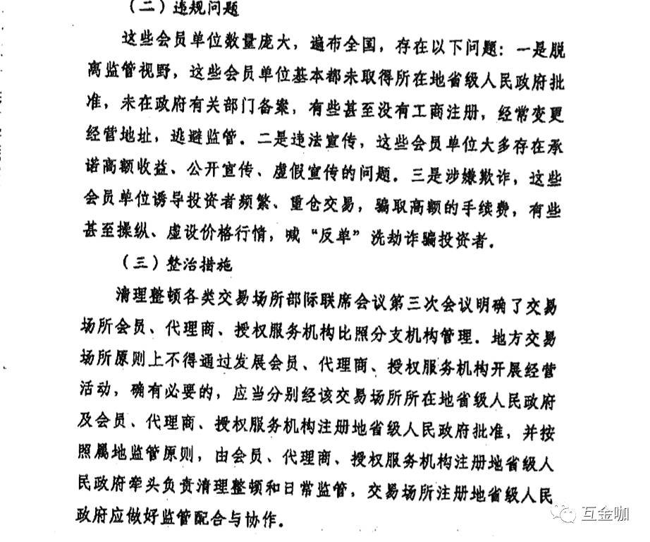 此前,清理整顿各类交易场所部际联席会议第三次会议明确了交易场所会员、代理商、授权服务机构比照分支机构管理。
