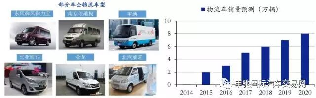 市场空间:物流业快速发展对于城市物流车需求激增是市场爆发的基础,2014年新能源物流车仅有500辆,我们预计到2020年销量有望达到8万辆。