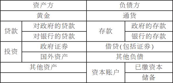典型的中央银行资产包括黄金、对政府和银行的贷款、对政府证券和国外资产的投资,以及其他资产。而典型的中央银行负债包括通货、政府和银行的存款、借贷以及其他负债。