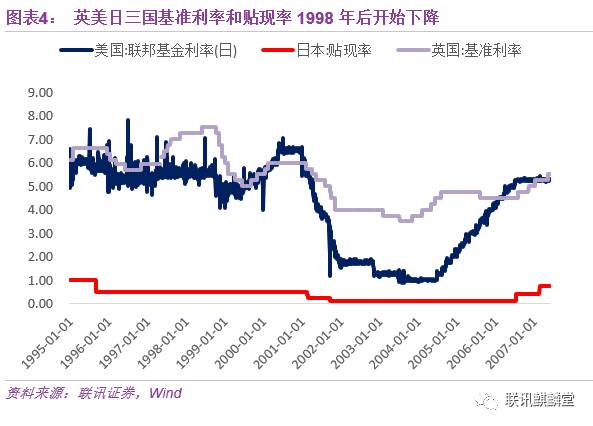 金融同业市场端。在2003年后,全球经济开始恢复回暖,美英日三国的通胀水平开始企稳回升,经济出现过热倾向,三国央行结束了为期多年的货币宽松周期,纷纷加息。