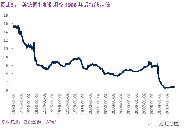 1998年英国国内经济开始下行,英央行开始降低政策利率,同时日本等国也相继进入货币政策宽松周期,全球金融机构流动性过剩,同业借贷利率开始大幅下降。