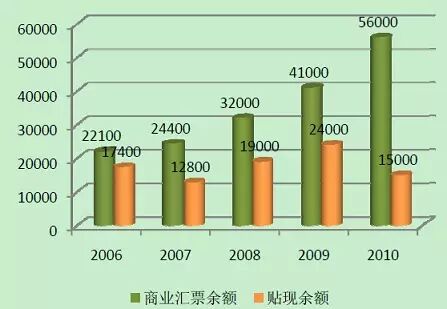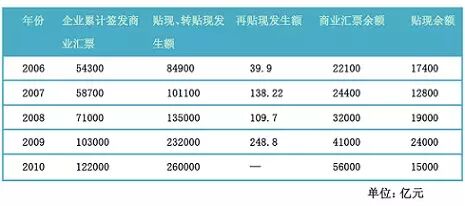 据统计,累计到2010年底,我国票据市场发展规模近年来不断扩大。商业汇票累计签发汇票总额亿从最初1994年得640亿元增加到截止2010年底得12万亿元累计签发率。贴现和转贴现发生额则从1994年470亿元增加至2010年260,000亿元。再贴现发生额从94年的49亿元到2009年得248.8亿元。而盛业汇票余额和贴现余额同样都有极高的涨幅。以下表格截取从2006至2010年我国票据市场增长情况: