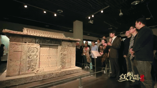 这是中国的西安市博物馆,一副青石雕刻的棺椁静静地陈列,棺椁的主人姓史,是一位在中国做生意的粟特人,葬于公元580年。他的故乡在今天中亚阿姆河和锡尔河流域的某个城市,他把中国的丝绸等商品辗转贩运到今天的伊朗、土耳其一带,再从那里采购玻璃、玉石等各种奇珍异宝,再贩运回中国。