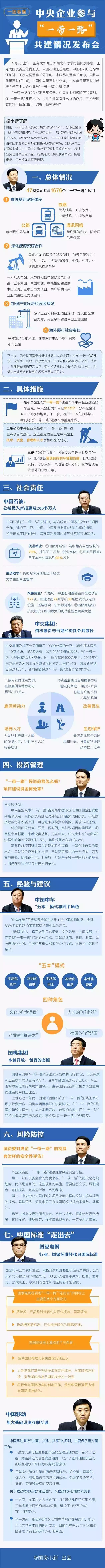 5月8日上午,国务院新闻办新闻发布厅举行新闻发布会,国务院国资委主任肖亚庆,中国石油副总经理、中国石油股份总裁汪东进,国家电网董事长舒印彪,中国移动董事长尚冰,国机集团董事长任洪斌,中国中车董事长刘化龙,中交集团董事长刘起涛介绍了中央企业参与“一带一路”共建情况,并答记者问。