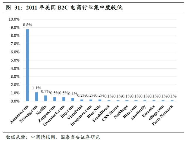 国内电商市场集中度较高,支付宝凭借淘宝与阿里巴巴市场份额实现 第三方支付的一家独大。数据显示在国内 B2B 电子商务运营商平台中 阿里巴巴的市场份额占 46.6%,支付宝则占 B2C 购物网站交易规模的 58.6%的市场份额,依托淘宝和阿里巴巴的快速成长,支付宝迅速成为 了国内第三方支付的霸主,2015 年数据显示支付宝占第三方互联网支 付交易规模 47.5%。