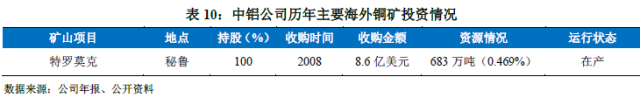中国有色集团下属海外铜矿主要由控股港股上市公司中国有色运营,下属中色非洲矿业、中色卢安夏铜业负责铜矿开采,主要铜矿包括谦比希、巴鲁巴和穆利亚希铜矿,2015年合计铜矿产量3.7万吨。整体来看,中国有色集团海外铜矿投资规模较小,矿山生产规模小,盈利贡献有限。