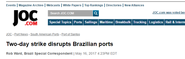 为反对政府养老改革和劳动制度改革,5月16~17日,由于巴西海关工作人员的罢工,巴西主要港口已经瘫痪,所有进出口货物已经被迫滞留!
