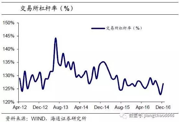 16年3季度开始,央行货币政策中性的同时,通过拉长久期的方式试图去杠杆,我们看到4季度银行间杠杆从108%下降至106%左右,而交易所杠杆从128%下降到125%左右,回购杠杆的确有所趋降,整体杠杆水平并不十分高。从季节性角度看,16年4季度债市整体的质押回购杠杆率也要比15年同期低1-2个百分点。