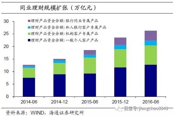 16年6月末,银行理财余额规模在26万亿左右,其中银行同业理财4万亿,而对比15年6月,银行同业理财仅1.8万亿,同比增速达到120%,足以可见这两年银行表外同业的扩张速度。
