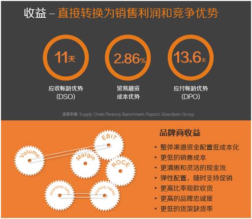核心品牌企业或核心企业联合金融机构为经销商提供供应链金融手段收益巨大。一方面可确保整体供需链融资成本下降,经销商有充足的流动性意味着品牌商销量增长和利润提升。同时渠道融资服务可以作为品牌企业进一步获取需求数据,配套渠道管理升级的重要手段。大数据为支撑的供应链金融是互联网+渠道管理升级的重要组成。