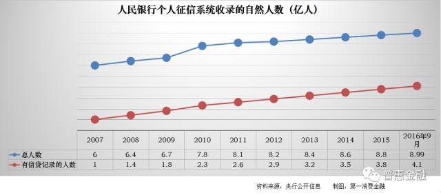 然而,以个人征信为例,央行征信系统的覆盖极为有限。截止2016年9月,央行个人征信系统共有2927家接入机构,收录自然人数8.99亿,其中4.12亿人有信贷记录。