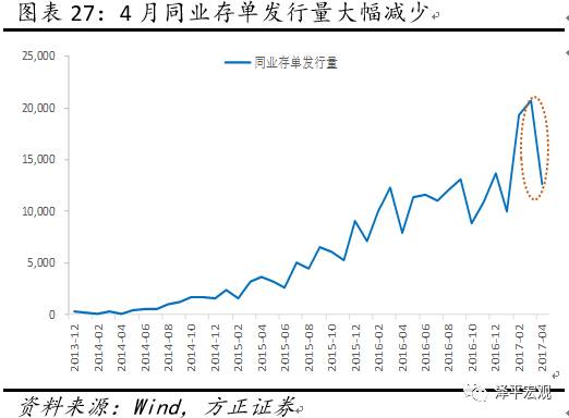 就银行而言,同业存单发行规模主动或被动收缩,资产负债规模扩张速度回归理性。一系列文件的出台,和监管部门严监管信号的释放,监管将会继续持续一段时间,直到取得一定的效果。