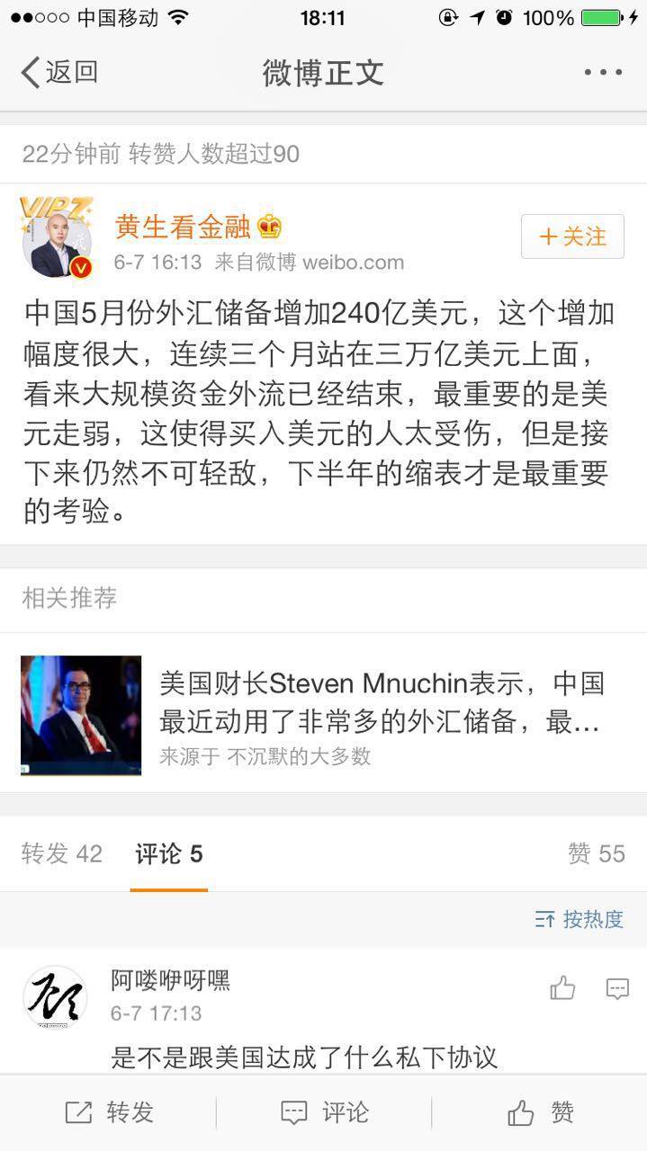 来源:私银圈综合央行网站、华尔街见闻、小白读财经(veekn365)、新浪微博、网络央行公布的官方储备资产显示,中国5月外汇储备30535.7亿美元,前值3