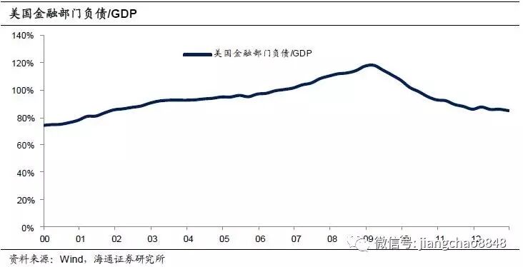 美国去杠杆:先金融后经济,失业问题严重。从美国的经验来看,其去杠杆是在09年初从金融部门开始,随后在09年下半年引发了实体经济中居民和企业部门的去杠杆,这一过程中失业率一度攀升至10%,引发了严重的就业问题。因此很多人担心金融去杠杆的力度不能过大,否则实体经济承受不了失业的压力。