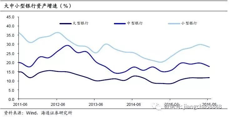 寻找中国的富国银行:谁在收缩。从上市银行的报表来看,2016年四大银行中的中行、工行和农行,股份行中的招商银行,农商行中的无锡银行、张家港行增速在10%以内。2017年1季度中信银行已经开始主动缩表。
