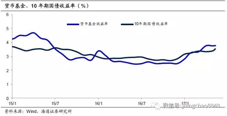 美林投资时钟停摆。从经典的美林投资时钟角度观察,16年中国投资时钟转得飞快,年初市场还在讨论经济衰退与通缩,债券是投资首选,到了下半年就变成商品与股市齐涨,而这是经济步入过热期的表现。但从17年以来,现金收益率大幅上升,货币基金收益率接近4%,比去年几乎上升一倍,这是经济步入滞胀期的表现,源于央行货币紧缩,经济开始减速。我们认为当前投资时钟短期停摆,因为经济下行对股市商品不利、但是央行货币紧缩对债市不利,所以现金为王是短期主要策略。