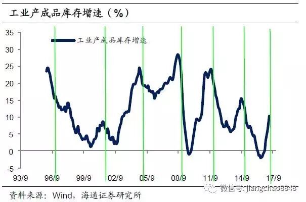 库存周期已至尾声。随着需求的回落,工业品库存开始逐渐上升。本轮经济反弹时间较短,属于典型的库存周期,过去中国一轮典型的库存周期持续时间通常在3年左右。从工业产成品库存增速看,本轮去库存从14年3季度开始,补库存从16年3季度开始,到17年2、3季度库存周期已经步入尾声。从制造业原材料库存来看,已经恢复到过去5年的高位水平。在经济长期趋势下行的背景下,目前的原材料库存水平难以进一步上升,而原料购进价格的见顶回落也意味着补库存接近尾声。