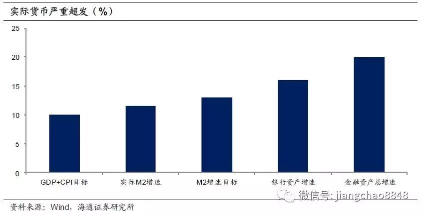 M2是“假货币”?货币严重超发。因此,考虑了各个金融子行业之后,16年中国金融行业资产总增速高达20%,即便考虑到各种互相持有重复计算,金融行业资产增速也不会低于银行表内资产16%的增速,这就远高于13%的M2增速目标,远超10%的GDP和CPI增长需要。