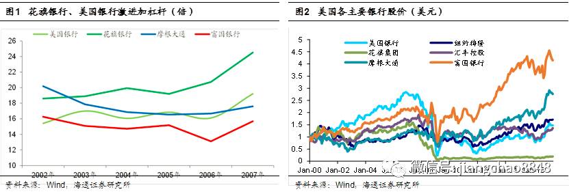 06/07年:富国银行主动收缩。再从金融行业来看,将会出现大浪淘沙的过程,那些没有节制,疯狂扩张的银行将会吃下苦果,但是能够逆势而为,主动收缩规模的银行,将有希望发展壮大。美国金融危机前后的富国银行和花旗银行就形成鲜明反差,花旗银行危机前激进经营、杠杆高企、再也没有恢复元气,而富国银行主动收缩业务,压缩杠杆,结果最早从危机中复苏,股价创出新高。