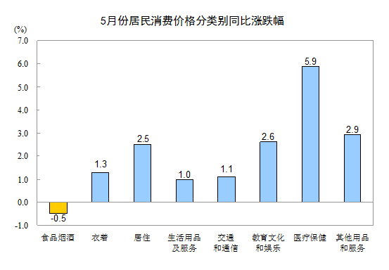 5月份,其他七大类价格同比均有所上涨。