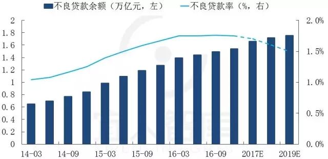 不良资产总量继续上行,AMC行业面临万亿规模的发展空间。除去港澳台外地方AMC最多可以设立62家,目前剩余的27席得到民营资本的热捧。有实力的民营资本希望通过控股或设立AMC公司,把握行业发展机遇,提升经营绩效。 受MPA监管政策限制和货币中性预期影响,2017-2019年商业银行贷款增速分别为11%,10%和9%,不良贷款率因为新增减少和处置加大而出现拐点,不良率分别为1.7%、1.6%和1.5%。 预计2017-2019年不良贷款余额将达到1.66万亿元、1.72万亿元和1.76万亿元。2016年不良核销清收6822亿元,2017-2019年AMC公司将有2万亿-2.28万亿元的发展空间。此外,若首批债转股AMC公司将吸收价值3000亿元的银行不良资产。