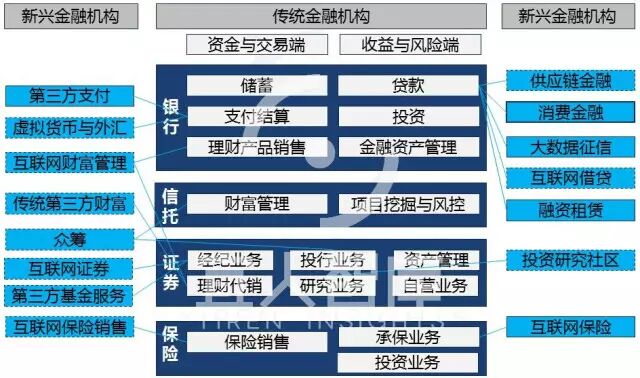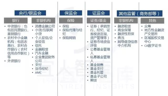 中国现有金融业态,是从传统金融机构各项业务衍生而出,逐渐发展壮大,从而形成各项新兴金融业务,其中有些已被纳入监管范围,如采用牌照制或备案制监管,有些则还在野蛮生长。