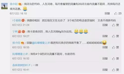 这样的例子还有很多,在中新网近日发起的一项关于本地流量、全国通用流量的意见调查中,微博网友@徐小同表示:我河北的号码,人在河南,每月套餐里的流量有2GB,河北省内流量不能用,每月还得充话费。