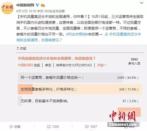 近日,中国新闻网微博发起关于“手机流量竟还分本地流量和全国通用,你咋看?”的小调查。
