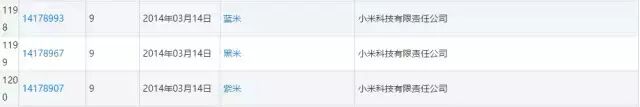 显然,冠生园是不折不扣的色彩控,但色彩控并非他一家。我们熟悉的雷军和他的小米,同样是宗师级别的颜色控——我们知道有红米手机,但很少有人知道,小米已经把蓝米、黑米、紫米、橙米、绿米、黄米、桔米全都注册了!图:小米公司注册的部分商标(图片来源:商标局)