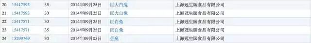 大家小时候吃的正版大白兔奶糖是上海冠生园食品有限公司出品的,而每经小编(微信号:nbdnews)在国家工商管理总局商标局系统中查询到,上海冠生园食品确实注册了很多类似商标,例如2014年注册的“巨大白兔”、“巨白兔”、“金兔”;1991年注册的“大黑兔”、“大花兔”、“大灰兔”、大红兔”。图:冠生园注册的部分商标(图片来源:商标局)