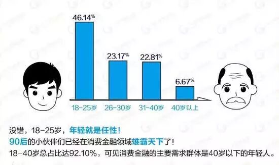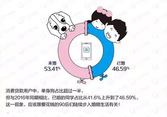 本月初消费金融领域持牌机构马上消费金融发布《2017贷款用户人口普查结果》,数据显示,在目前马上消费金融的用户中,90后占据半壁江山,占比46.14%!