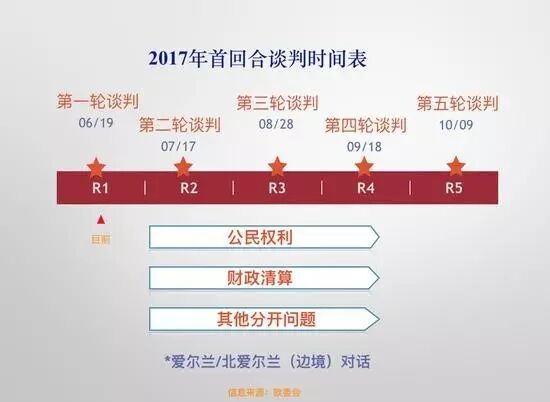 根据欧委会公布的两页纸文件,脱欧谈判由全会及小组会议两部分组成,今年共将进行五轮,每四周举行一次。初期谈判将围绕公民权利、财政清算(即分手费)和其他分开问题。此外,爱尔兰/北爱尔兰(边境)对话也已启动。