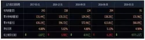来自WIND的数据显示,从2016年一季度到2017年一季度合计5个季度中,工商银行的持股机构数量,从91家上升至2016年四季度末最高时,达到338家,但到2017年一季度时又下降近1/3至243家。而值得注意的是,工商银行A股的股价,在持股机构数量大幅上升的2016年全年仅上涨了1.38%;而在机构数量大幅减少的今年一季度,股价涨幅反而达到了9.75%。与此同时,从机构合计持股数量来看,过去5个季度中,机构累计持有数量整体均围绕130亿股窄幅波动,也根本没有任何因机构抱团而持股总量显著增加的特征。