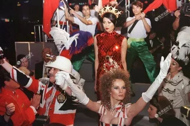 22、1997年7月1日凌晨零时,一个名为“一国两制的回归”化妆派对上,狂欢者将身上的英国服饰换成中式服装。