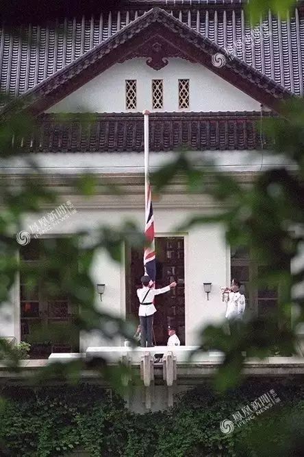 4、1997年6月30日,殖民地总督官邸,英国士兵降下英国国旗。