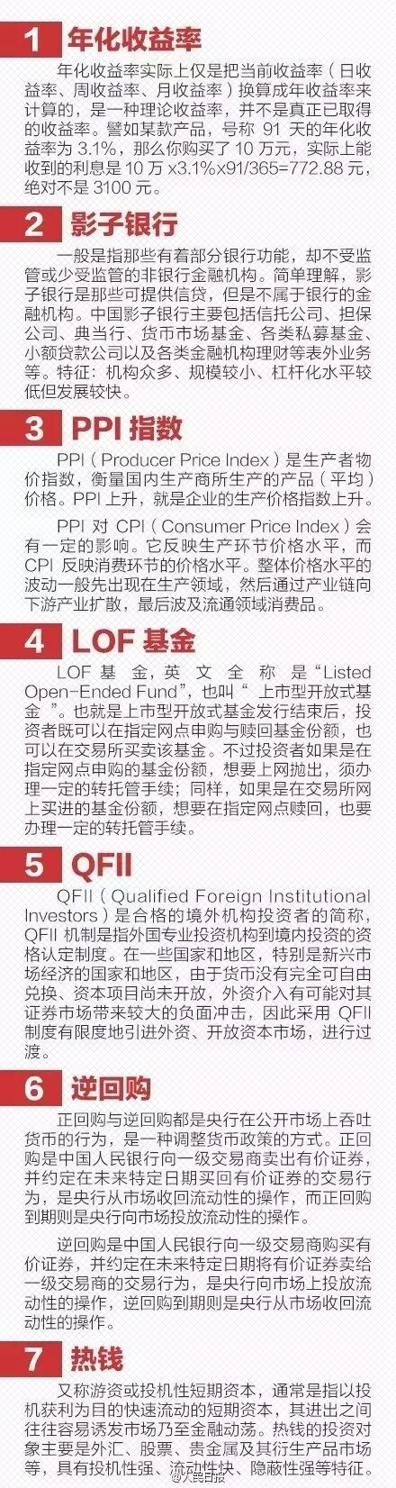 来源:人民日报各位小伙伴们在学习金融经济知识的时候,是不是会经常被各种词汇搞得一脸懵逼。今天,小编发现了了一份超全的金融词汇表,足足