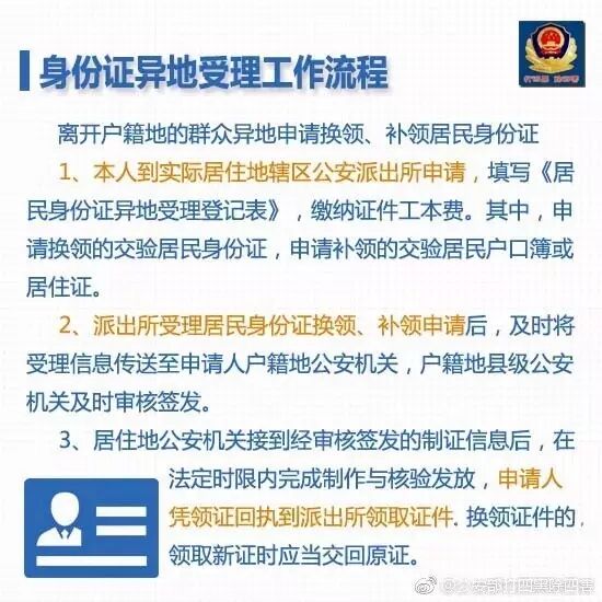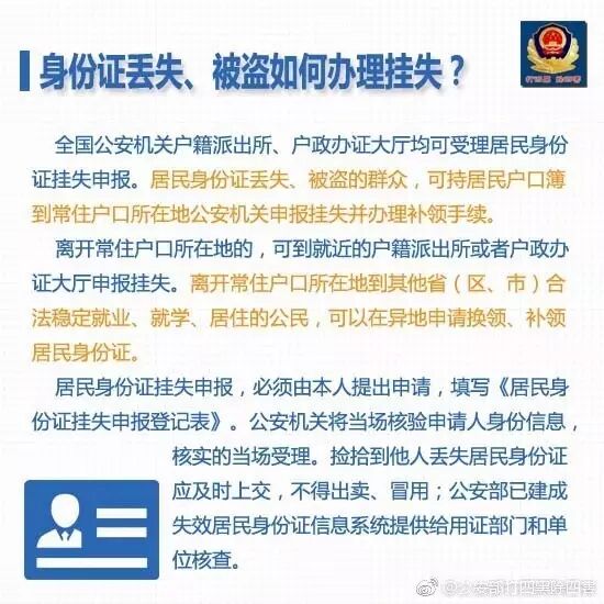 丨来源:公安部打四黑除四害微博7月1日起,公安部将在全国范围实施#身份证异地受理#、挂失申报和丢失招领工作。提醒:①首次申领居民身份证的 ②