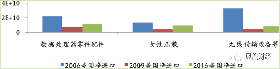 对美出口:美国是我国出口第一大国,也是全球经济周期的领先者,对美出口很大程度上决定了我国当年出口形势。我们挑选了2006-2009年间美国净进口下降幅度大、2009-2016年净进口没有剧烈变化(增长或降低)并且中国占进口份额没有明显下降的细分行业。2009、2016年人民币对美元汇率大致相当,因此不存在汇率对出口的影响。我们发现在大多数的行业中中国占美国(净)进口份额没有显著下降,大多数行业份额还有增加。我们挑选了规模前3的行业,分别为数据处理器配件零部件、女性正装、无线传播等。这些行业在经历了07年次贷危机后,美国对这些行业的需求一直没有复苏。随着经济的整体复苏,我们认为这些行业的进口需求会相对其他行业有补涨行情。这些行业也是美国净进口规模最大的细分行业(石油除外)。从中国占美国净进口份额来看,中国的出口行业经历了07年次贷危机的考验,没有出现份额稀释的情况。