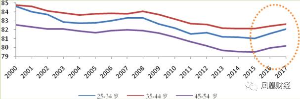 图 13:25-54岁劳动主力各年龄层表现出明确回升态势