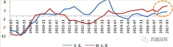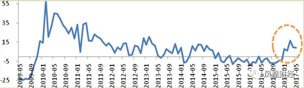 但可以注意到发达经济体的固定资产投资均在2016年4季度开始增速。美国自2012年后投资增速一直下滑,2016年3季度跌至-0.08%,随后增速抬头。英国、日本和欧元区表现相似。无论从趋势还是同比增速来看,发达国家进入新一轮投资周期的概率较大。同期我国出口同比增速也表现出同步增长,因此我们认为我国出口贸易在今明两年的走势会极大地减轻国内GDP增涨的压力。