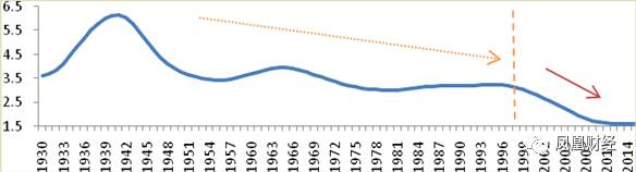 图10:美国实际GDP长期趋势性增速(%)总体下降