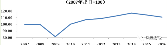 发达经济体实际固定投资均在2016年4季度开始增速,有望走出投资低迷的困境。出口品主要构成是中间产品,属于投资,故我国出口形势主要受到外国投资变动的影响。虽然之前发达经济体总体GDP复苏良好,但是投资仍然低迷。美国实际固定投资于2014年才恢复到2007年水平,英国于2016年3季度,而日本和欧元区尚未恢复。相应的我国实际出口2007年-2016年仅增长11%。