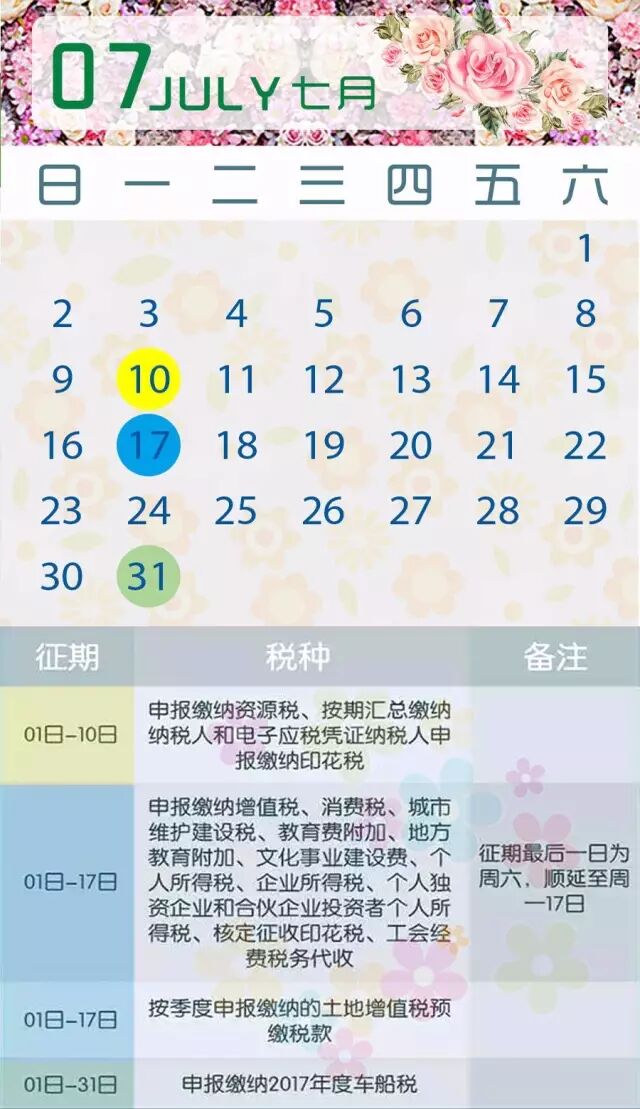 来源:高顿财务培训、中国会计视野,办税日历转自xiaochenshuiwu对于会计来说,7月1日是个分水岭,很多重要的财税法规开始实施,需要会计人重点关注
