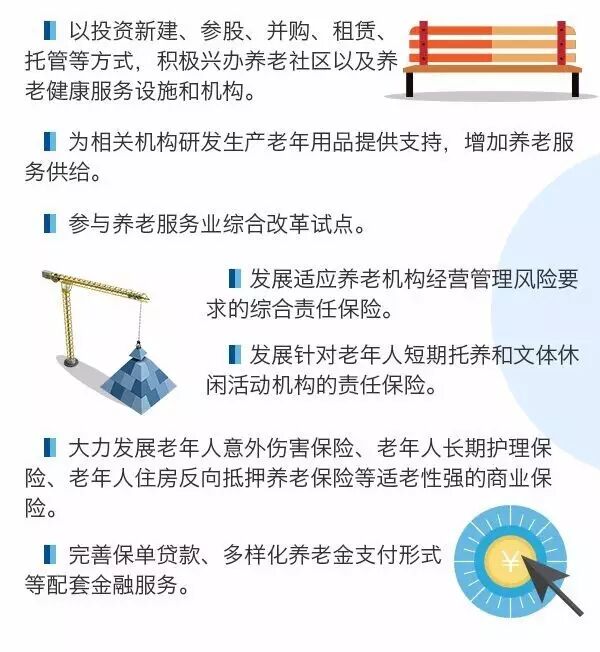 ▌ 支持商业保险机构依法依规在投资开办的养老机构内设置医院、门诊、康复中心等医疗机构,符合条件的可按规定纳入城乡基本医疗保险定点范围