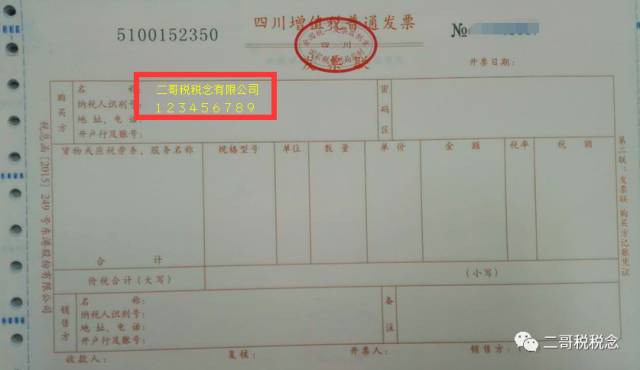 而如图,你也可以看到,这种发票票面印制就印制了购买方的纳税人识别号。