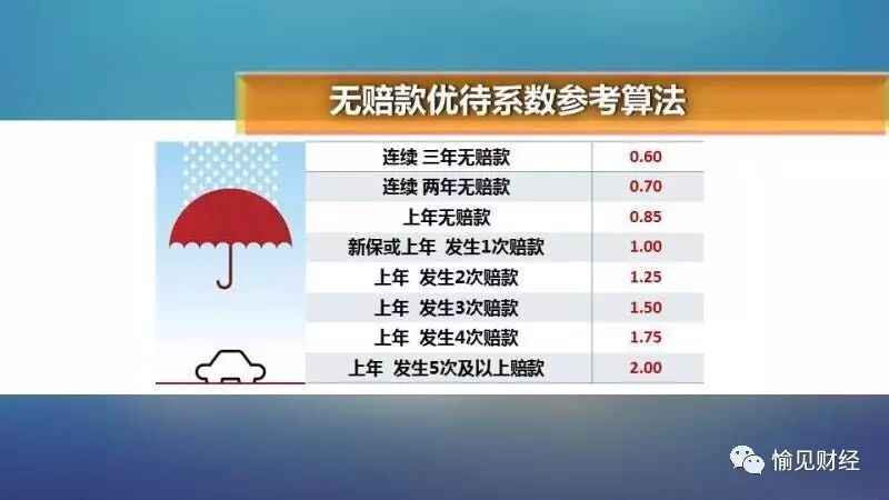 这些系数里面浮动范围最大的,就是“无赔款优待系数”,可以在0.6至2.0之间浮动。