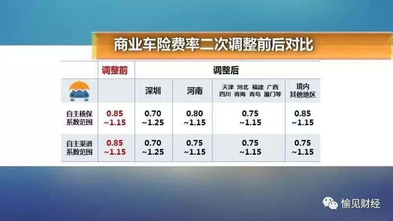 说到这里咱们也终于可以点点题,这一轮调整的,就是“自主核保系数”和“自主渠道系数”这两者。保监会给到财险公司们以前的浮动空间是0.85~1.15,这一轮,0.85这个下限,不同地区有不同程度的突破。