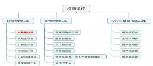 零售金融总部,包括零售网络银行部、财富管理部、私人银行部、零售信贷部等6个二级部门。