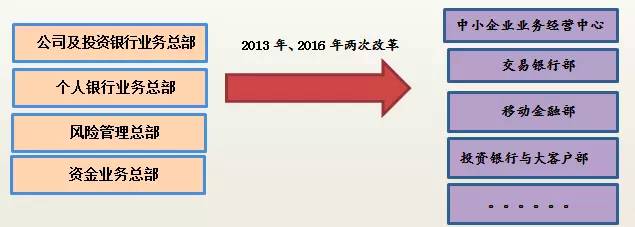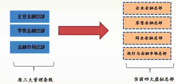 总行架构将调整从以往的对公、中小企业、零售、资产负债、风险管理、综合保障、行政科技等条线垂直管理调整为大公司、大零售、大内控、大行政四大条线。